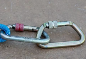 事實(shí)上確實(shí)如此,因?yàn)榘踩^上的鎖閉裝置是移動的,只要不碰到其他堅(jiān)硬的物質(zhì),就不會自由旋轉(zhuǎn),但是如果再在兩把連接好的鉤子后面懸掛上一根安全繩,繩索就處于不安全狀態(tài),一旦鉤子鎖閉功能失效,安全繩就會掉落,所以我們盡量將鉤子掛到完全鎖閉的連接環(huán)上。